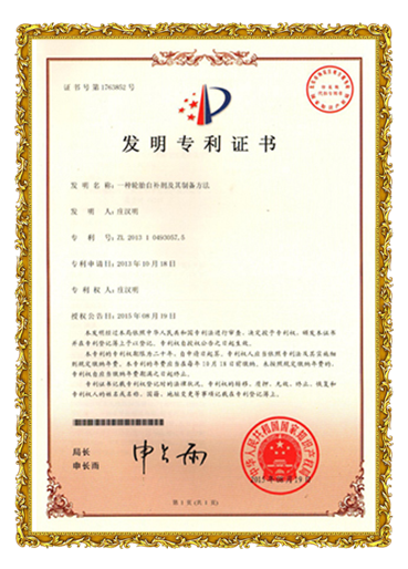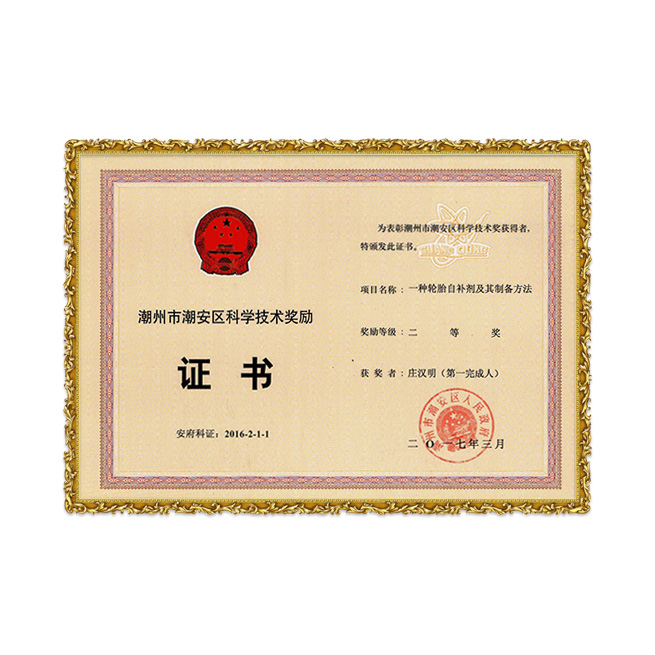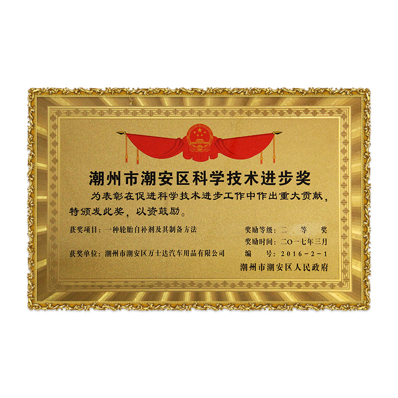 公司技術力量雄厚,生產設備先進,研發生產的輪胎自補劑獲得國家發明專利證書(專利號:ZL2013 1 0493057.5),該技術修補大破口效果顯著,深受廣大消費者的歡迎和喜愛,產品銷售世界各地。